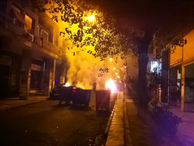 Exarchia recap, squad car rptdly responding to traffic accident torched, thrown bottles & teargas clashes after ~5 detained from square