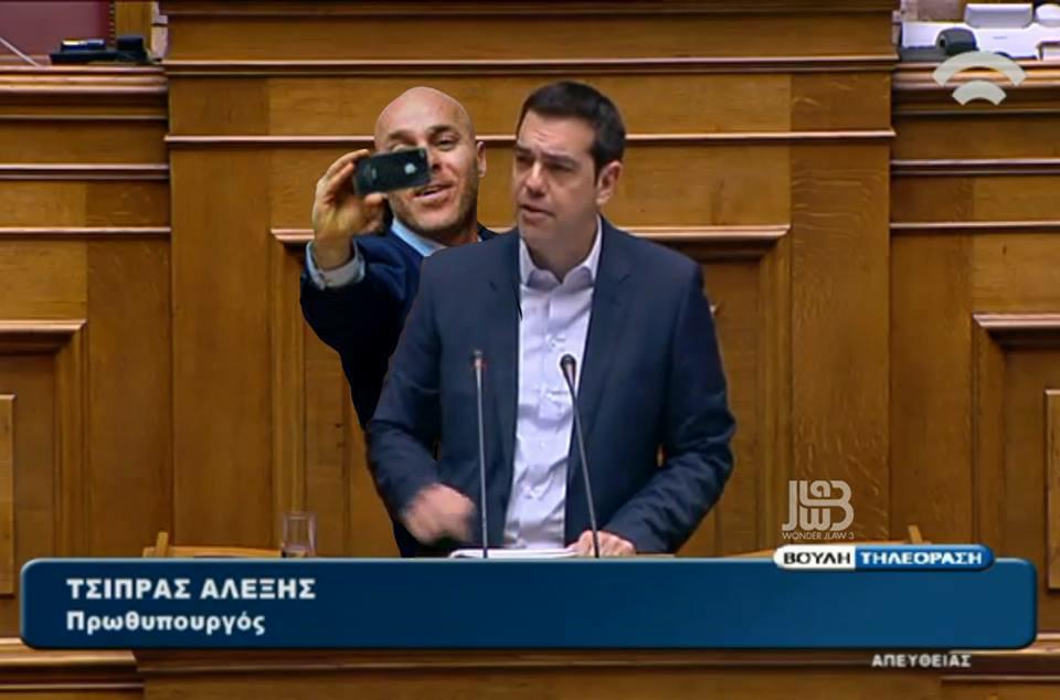 MP selfie memed all over, here on Tsipras RT @MakisSinodinos Και μια selfie αναμνηστική #klaiw (απο fb)pic.twitter.com/XWsttz9TdM