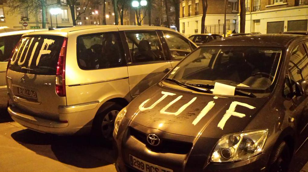 10 cars defaced w word "Jew" in Saint-Cloud, western Paris, this morning. Author in custody RT @_LICRA_ v @kazouillepic.twitter.com/d3sDRn21rA