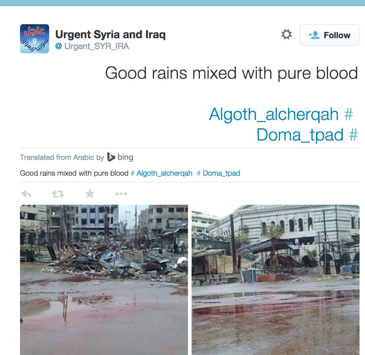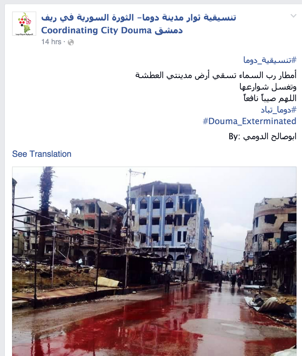 Any corroborating photos? Search @Topsy for instance of دوما (Duma), filter for photos posted today, sort by oldest