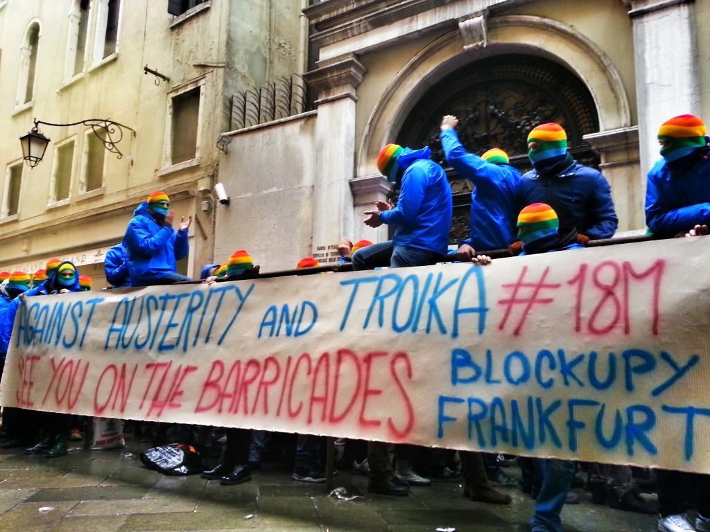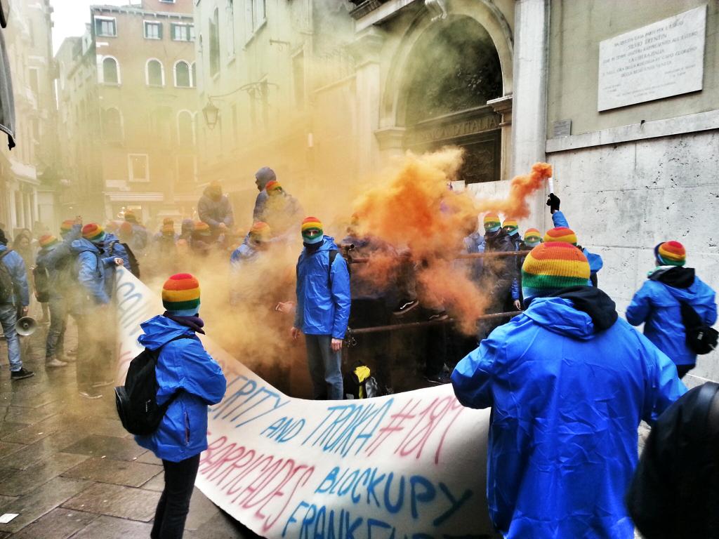 Impressive photos of anti-austerity blockade of Bank of Italy in Venice RT @gattoclochard pic.twitter.com/E9hdZWBEdJ #bankitalia