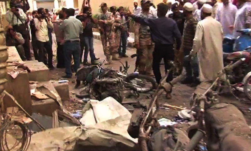 Blast at #Karachi mosque, 4 injured, 2 in critical. Timed explosive on motorcycle (@dawn_com) http://www.dawn.com/news/1170828/ pic.twitter.com/9Iu0f3UmDL