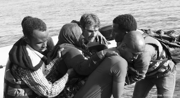 TT @mpodil 3 Somalis & a local carry handicapped Somali woman ashore #lesvos #refugeesGrpic.twitter.com/29lVRzvzl7