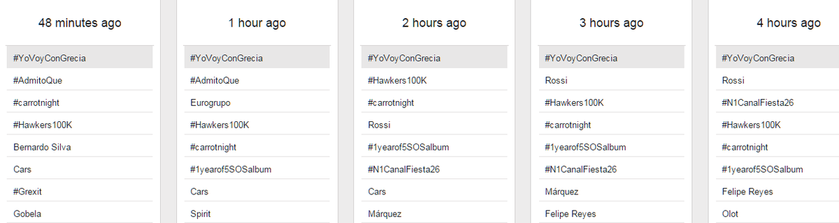 #YoVoyConGrecia consistently #1 trending topic in Spain in the last 4 hrs, via http://trends24.in/spain/ pic.twitter.com/0AlDfFonS7