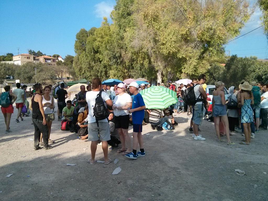 Refugees reaching Molyvos are mostly confined to the carpark -unsuitable for hosting people- until bussed out #Lesvospic.twitter.com/46y1xlc5Bn