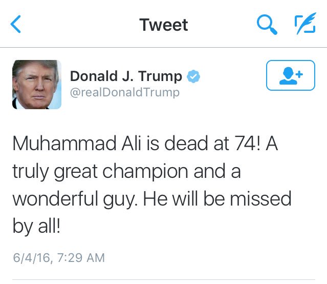 If Trump should STFU for a day, this would be it. He's making America the opposite of great, the antithesis of Alihttps://twitter.com/libyaliberty/status/739018821336457216 …