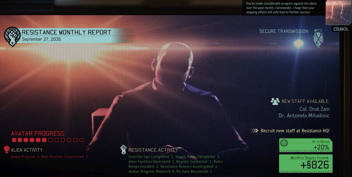 Agent Graves (presumably) is unimpressed as usual. We'll zero the doom counter in Oct., Phil, no worries #XCOM2pic.twitter.com/Jv4J122cCl