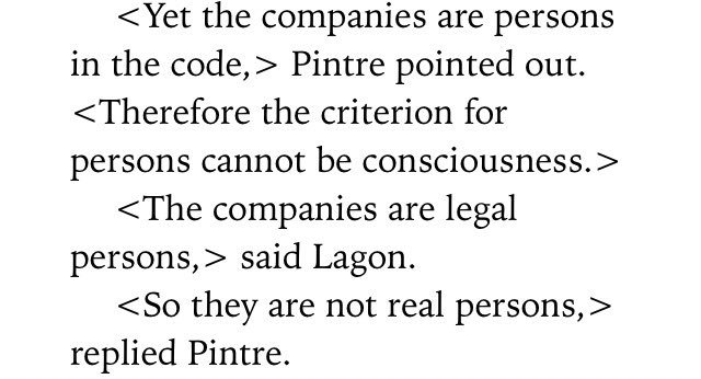 Corporations != people (newly sentient worker bots trying to make sense of personhood & property, in MacLeod's Corporation Wars)pic.twitter.com/25tRdPXWbc