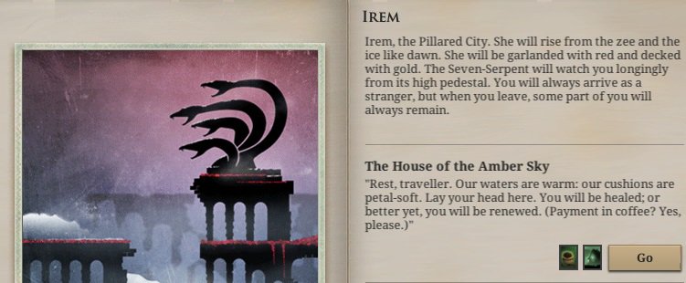 Finally, Irem. And likely the only place in the Neath that richly replenishes supplies. (And I beat the Pirate-Poet again.) What a journey.pic.twitter.com/sC3beY0xNZ