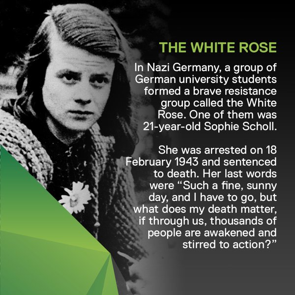 Chilling & inspiring, I didn't know this story https://en.wikipedia.org/wiki/Sophie_Scholl … https://twitter.com/GlobalJusticeUK/status/834448857224339457 … v @alicebell