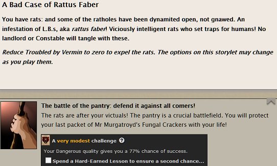 #FallenLondon is a grindfest but its eclectic prose is v. entertaining (when I've time to read). Those sentient rats won't have my crackers.pic.twitter.com/J9SwyuUKcy
