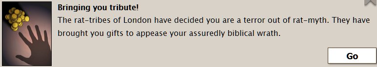 Totally stuck on the multitude of #FallenLondon grinds & bewildered about how to advance, but at least the sapient rats are behaving now.pic.twitter.com/gSgzbcPYY8