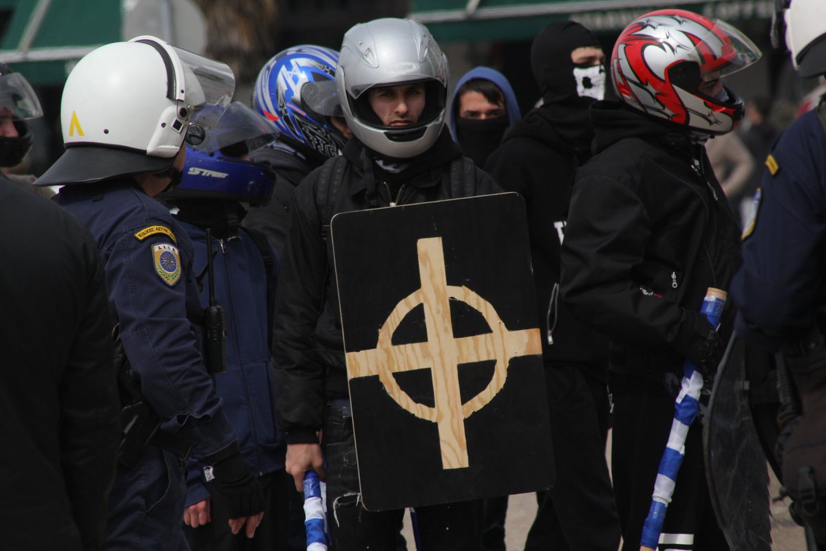 Fascists w wooden shields https://twitter.com/teacherdude/status/843468282254573568 … per @teacherdude, same ones who tried to block refugee children from attending school