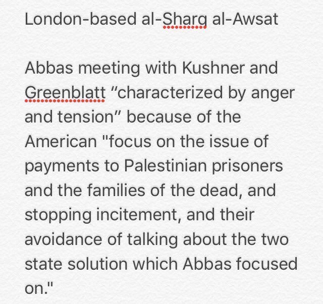 Report of Mahmud Abbas and Jared Kushner meeting pretty devastating for Palestinians. (My quick translation of https://aawsat.com/home/article/958201/%D9%84%D9%82%D8%A7%D8%A1-%C2%AB%D9%85%D8%AA%D9%88%D8%AA%D8%B1%C2%BB-%D8%A8%D9%8A%D9%86-%D8%B9%D8%A8%D8%A7%D8%B3-%D9%88%D9%85%D9%88%D9%81%D8%AF%D9%8E%D9%8A-%D8%AA%D8%B1%D9%85%D8%A8 … pic.twitter.com/7KcWNhVTv5