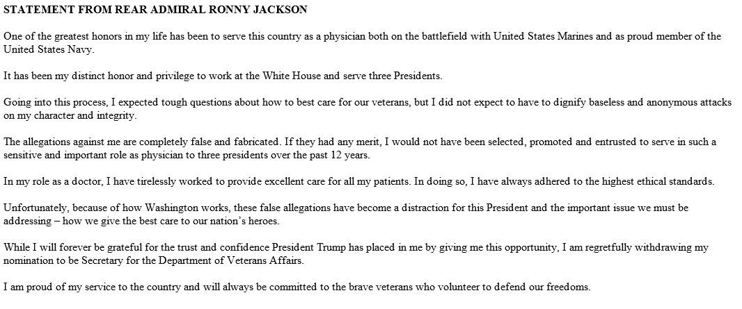Jackson was admittedly the least unlikable of Trump’s disposable flunkies, but that didn’t make him competent to lead the VA.https://twitter.com/msnbc/status/989473262123061255 …