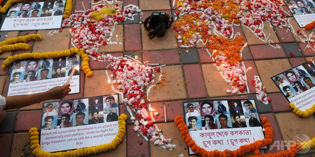 On #WorldPressFreedomDay we mourn the loss of courageous journalists killed, harassed, intimidated as they work to shed light on rights violations. The killing of 10 journalists in Afghanistan was devastating for all of humanity. #StandUp for the safety of journalists - #Zeid pic.twitter.com/VZ3zFOep6l