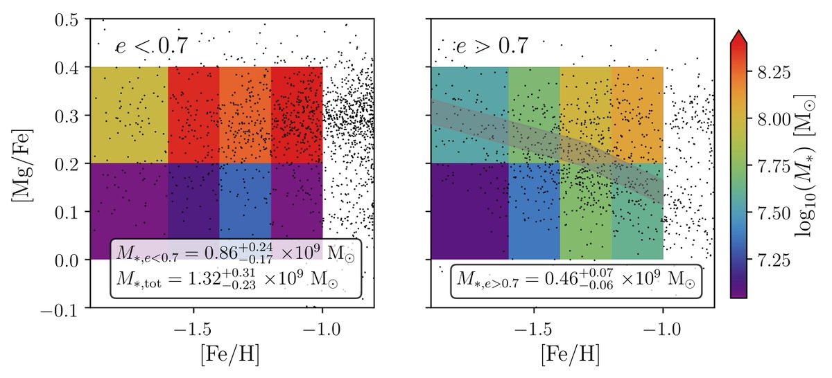 @jobovy on the stellar mass of the Milky Way halo and its components is finally done, and up on the arXiv (https://arxiv.org/abs/1910.03590 ). In it, we use@APOGEEsurvey and@ESAGaia data to measure the mass in stars with different element abundances and eccentricitypic.twitter.com/jTpiMEJTGr