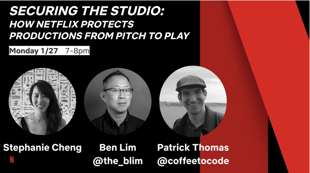 @the_blim and I will be talking about "Securing the Netflix Studio" and all the interesting work happening here.#enigma2020pic.twitter.com/XQ4uuZAgLu
