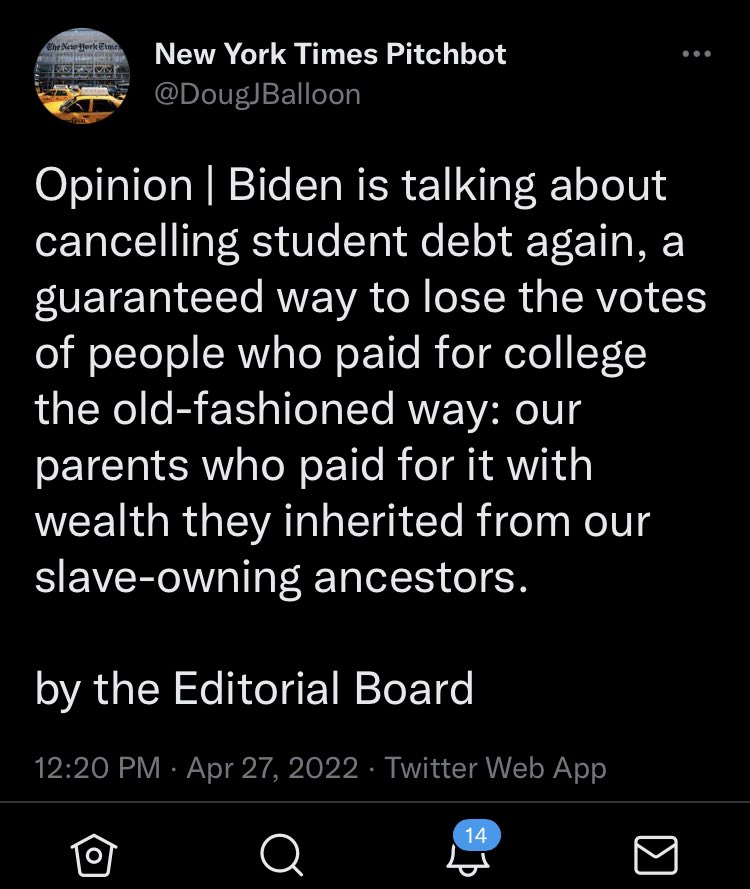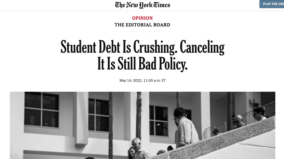 @StrikeDebt for annotating this awful NYT editorial against canceling student debt—but it’s also telling that the editorial begins by noting that student debt is causing generational harm, before saying it shouldn’t be canceled