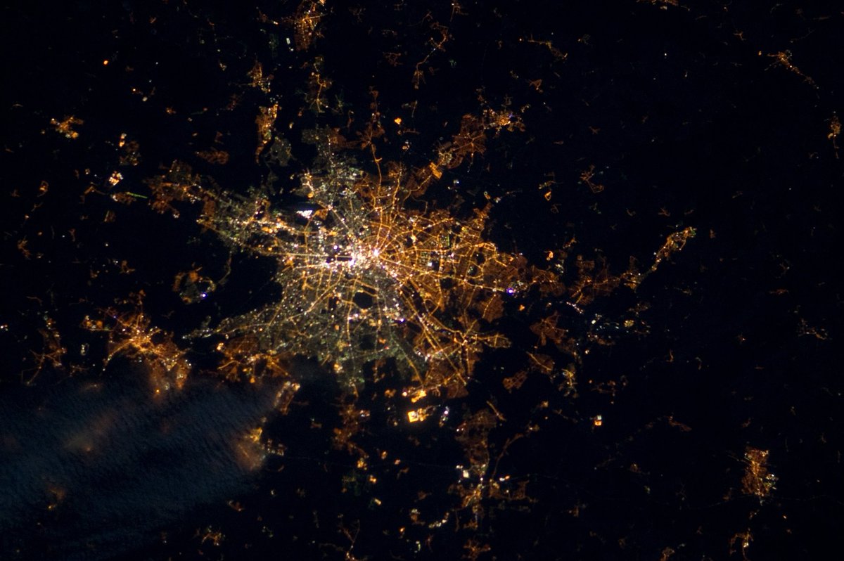 Weil es vorhin zu dem Berlin-Bild angemerkt wurde: Unterschiedliche Farben der Straßenlaternen in Ost und West in dieser Aufnahme aus dem Jahr 2012 noch etwas deutlicher. Foto von André Kuipers (ESA) von Bord der ISS.pic.twitter.com/vq6KOz3bCs