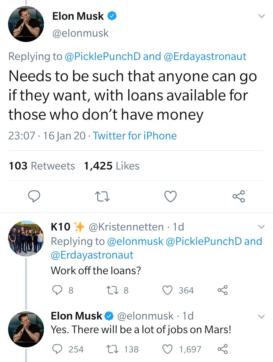 7/ "If I don't like it I'll just come back." Yeah, no. Musk has publicly announced that there'll be a 2-class social system on Mars: billionaires who can afford the ticket, and indentured servants who'll have to work for free on Mars to pay for the trip. There's no ticket back.pic.twitter.com/KPfEk1kUFW