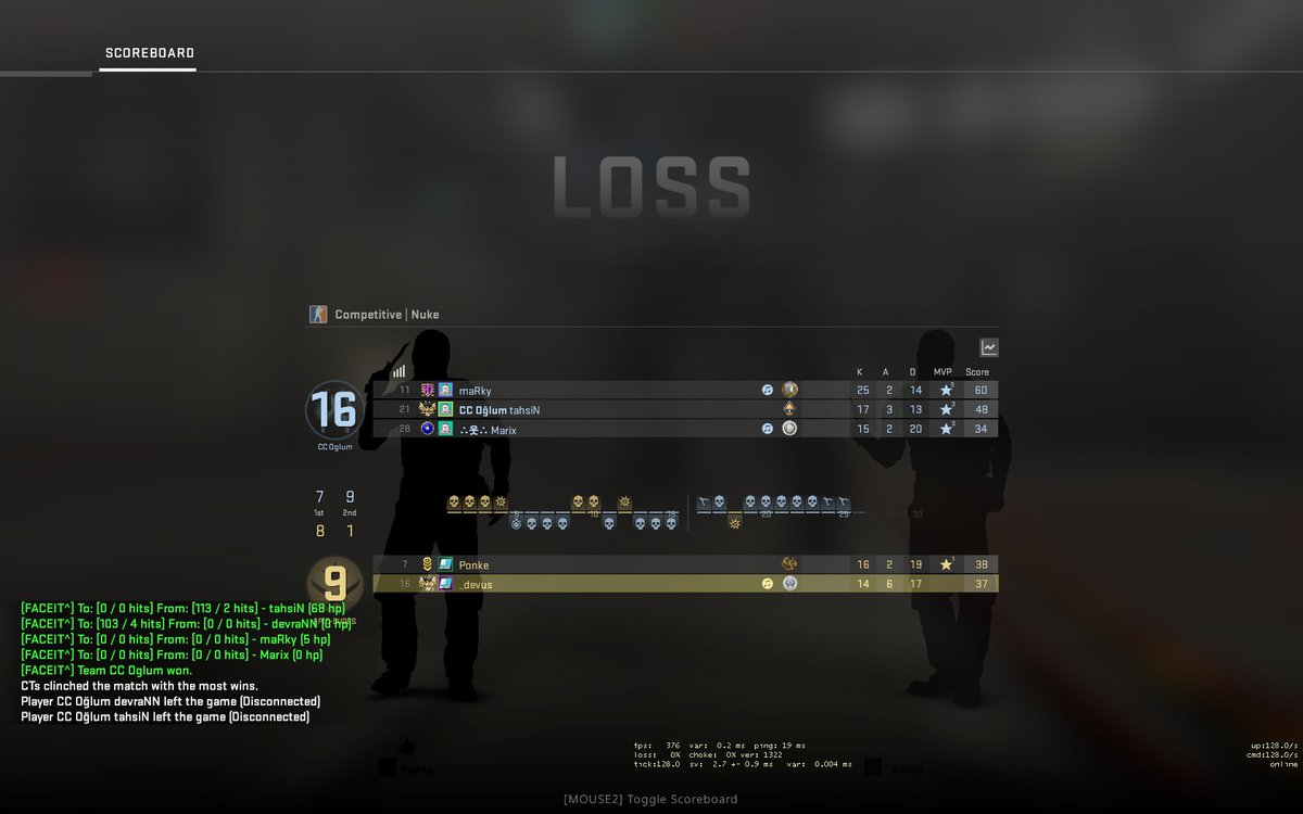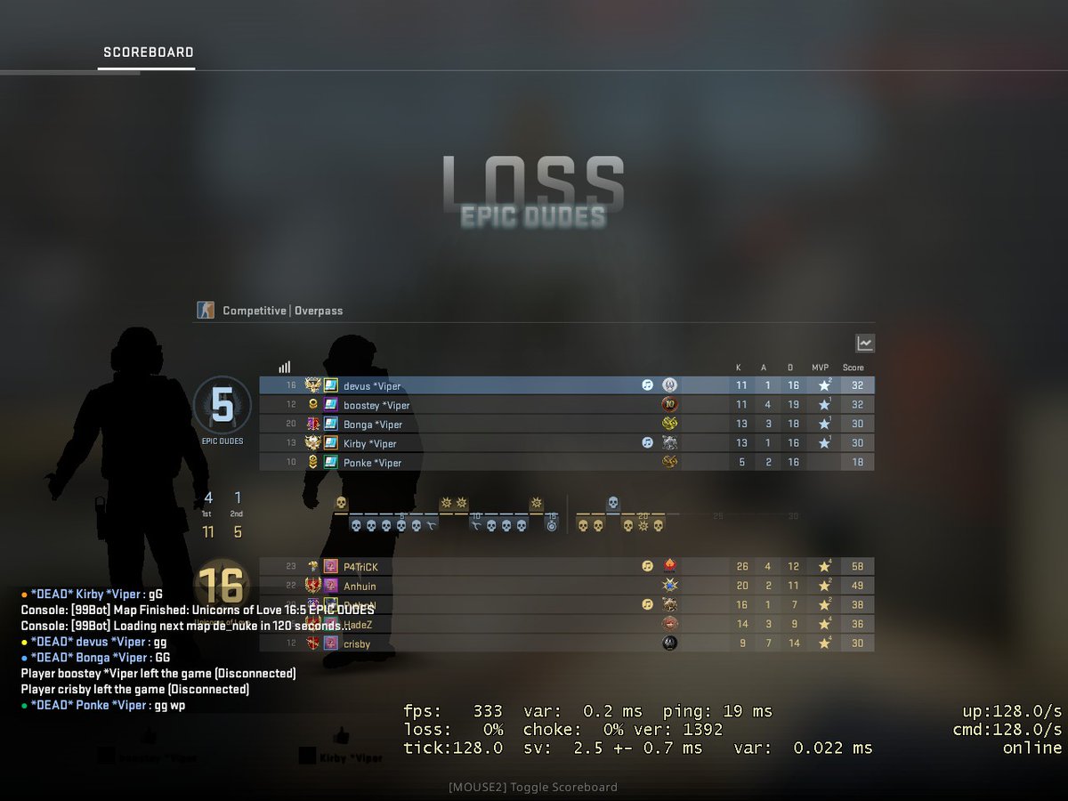 Waren leider zu sehr am schlafen auf dem Server und alles hat sich sehr verwirrt angefühlt. Dann kam auch ab und an Pech dazu, sollte nicht sein. Damit verlieren wir verdient gegen @uol_csgo in den