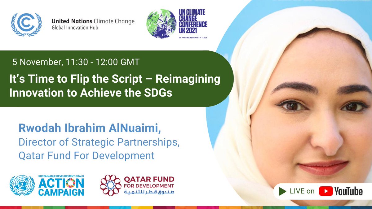 #SDGs at@UNFCCC#COP26 Innovation Hub. Hear from@qatar_fund@AstroSamantha@ESA_EO@jeanbetrand on the Innovation future through the lens of#ClimateAction#Act4SDGs
