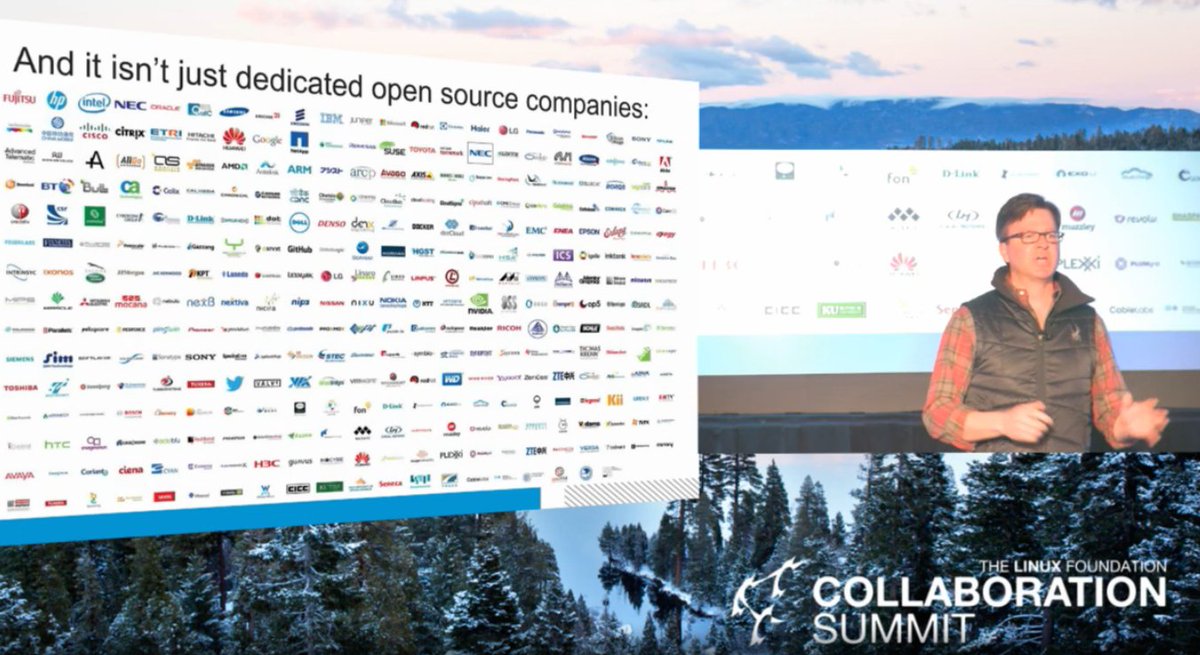 Jim Zemlin (ED of @linuxfoundation) on the permeation of OSS at the Collaboration Summit in Tahoe.pic.twitter.com/kWanaxylpy