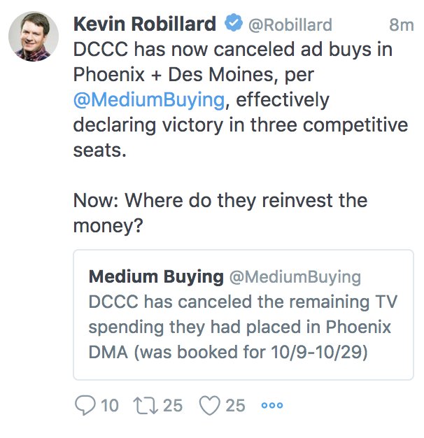 DCCC has now canceled ad buys in Phoenix + Cedar Rapids, per @MediumBuying, effectively declaring victory in three competitive seats.