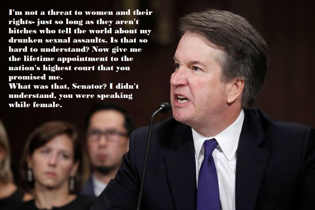 Right. Remember how Kavanaugh (in typical sucking up mode) had suggested the Qs on masturbation, etc? Some choir boy.