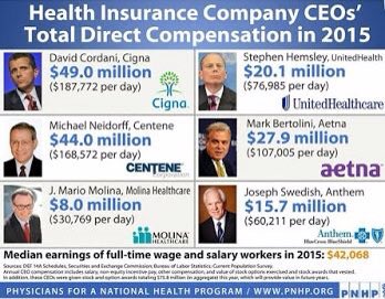 Gobsmacking jump in salaries for healthcare insurance execs–whom Trump's "healthcare" bill would give more tax cuts to