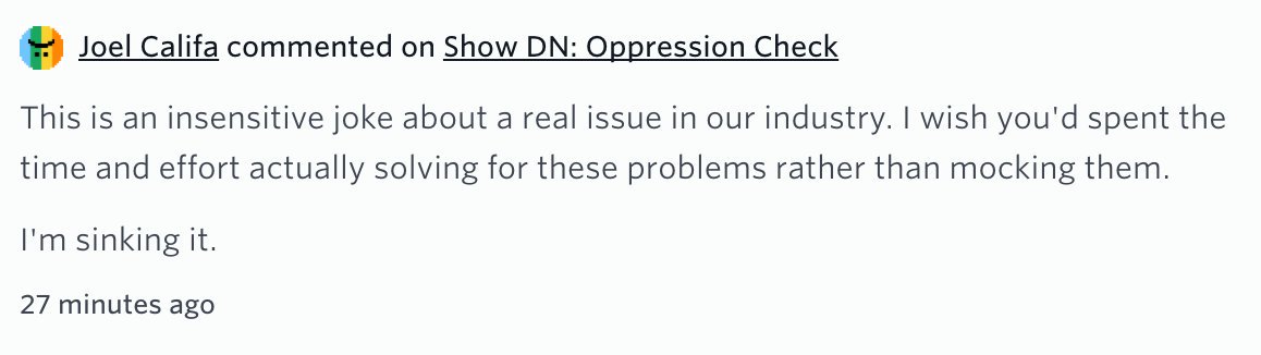 What Joel doesn't understand is I created a solution. Affirmative action doesn't sound as great when you're as transparent about it as I was in the video.pic.twitter.com/YORNqbERca