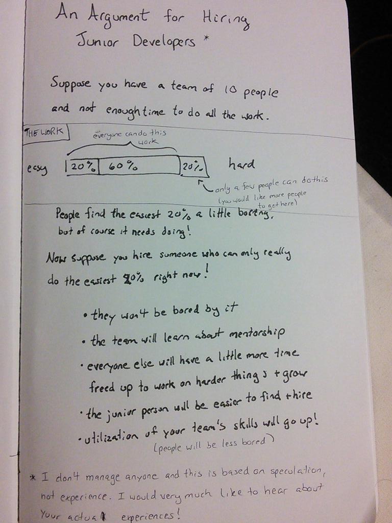 An argument for hiring junior developers (from a conversation I had with @kamalmarhubi just now) pic.twitter.com/X4PIcPzoMD