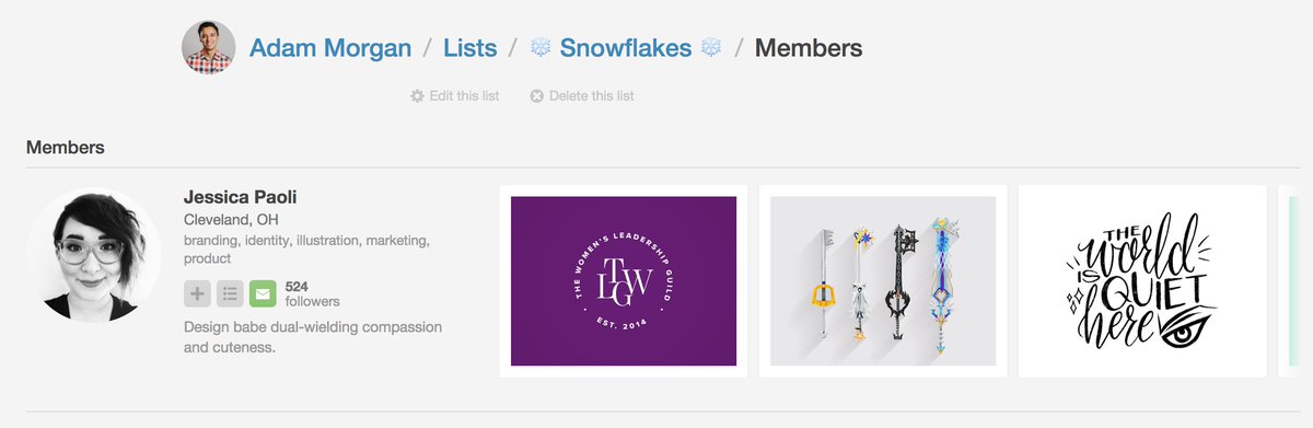 I've created my own list. Design directors, do whatever you want. https://dribbble.com/atommorgan/lists/26783--Snowflakes/members …pic.twitter.com/nVSaBwpEN1
