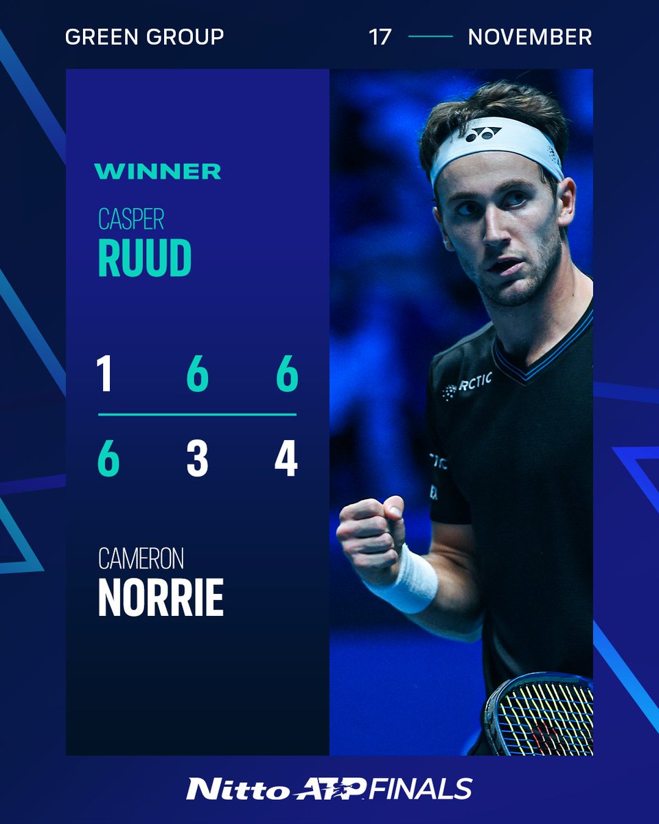 Casper with the comeback 👏 🇳🇴 @CasperRuud98 defeats Norrie to keep his #NittoATPFinals hopes alive!pic.twitter.com/rR57VoO9qK