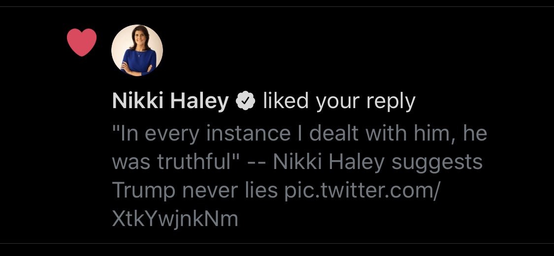 "In every instance I dealt with him, he was truthful" -- Nikki Haley suggests Trump never liespic.twitter.com/XtkYwjnkNm