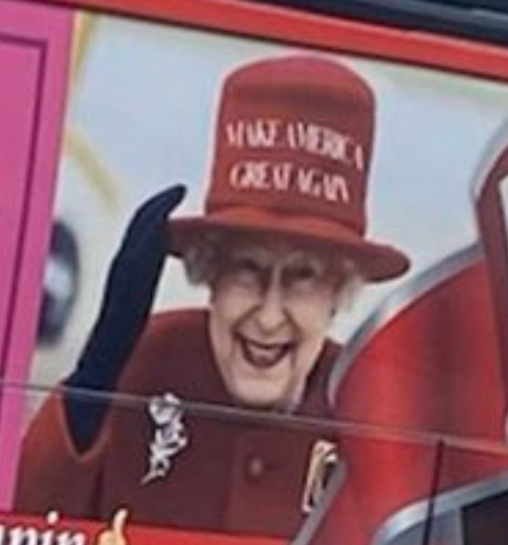 and why did they photoshop a trump hat onto queen elizabeth ii lmao