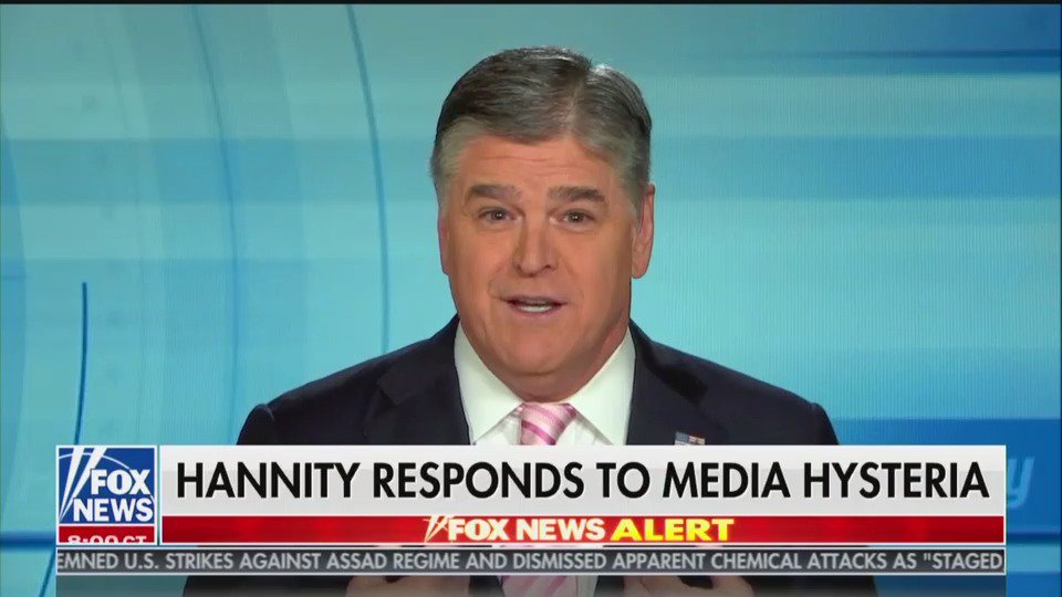 Hannity opens with a montage of.... news anchors saying his name?pic.twitter.com/fEIDdjloJL