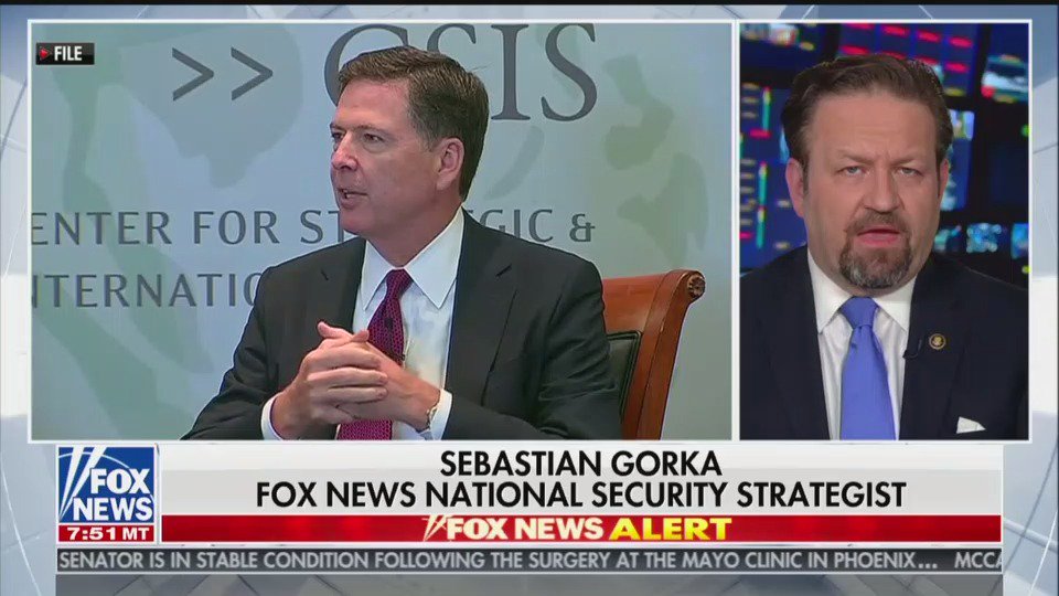 Seb Gorka is out here claiming that a "senior FBI agent" texted him recently and said that "for the first time in her life, she is ashamed to work for the FBI. And that, she said, is thanks to James Comey." I'd love to see that text!pic.twitter.com/6WLlmlrBqz