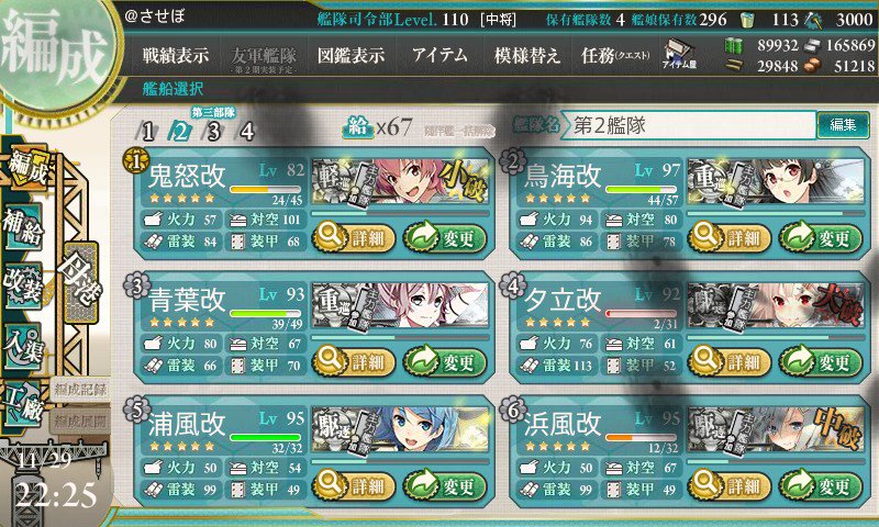 輸送を抜けて現在航空戦に移行。 愛宕さんとずいずいが暴れ大淀さんの眼鏡が光っています… 山「姉様はアイオワ砲を磨いています。時雨は酸素魚雷を探しています。そして私は発声練習中です」 最「支援艦隊で『邪魔だあああどけえええ』って潜水艦を爆砕していた山城さんは無駄に輝いていました…」