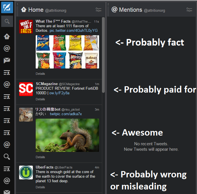 @attritionorg Promoted tweets don't end up in lists, and lists can be private.