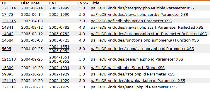 @jjarmoc@mroytman@raesene@sushidude with that, the report is really in question. 'pafiledb.php' isn't *1* vuln at all. it's 12 or 13!