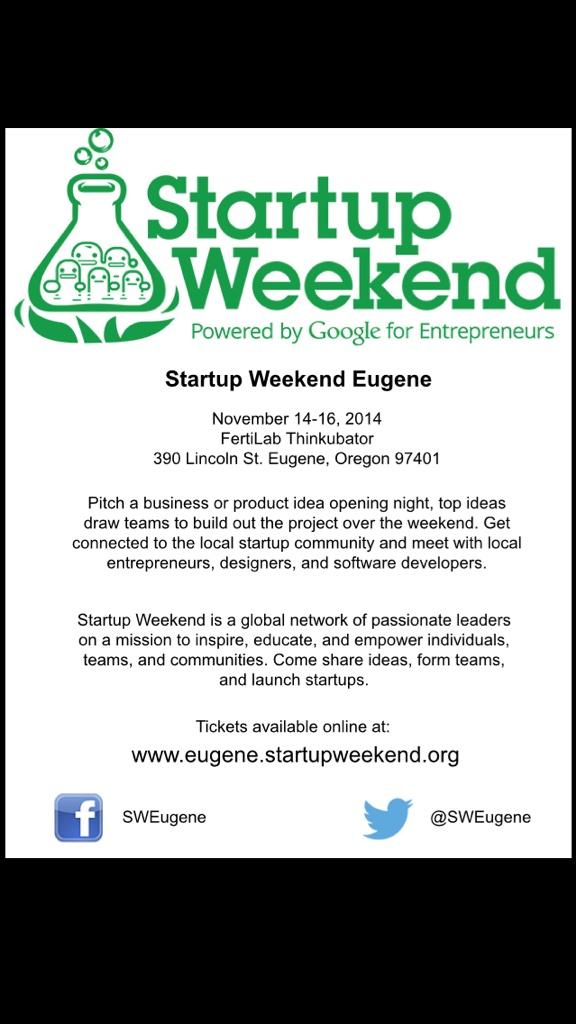 Startup Weekend Eugene is less than two weeks away. Limited amount of tickets available, purchase yours today!pic.twitter.com/ymSFKLDJut
