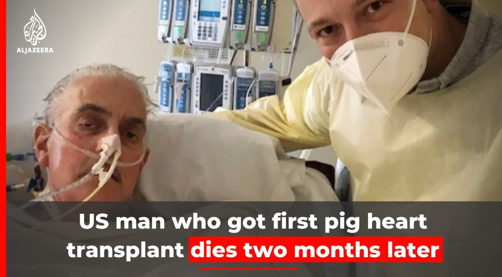 David Bennett, the first person to receive a heart transplant from a pig, has died two months after the groundbreaking experiment. Read more: https://aje.io/vz8nne pic.twitter.com/ySZA6E56wN