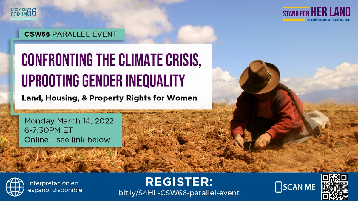 Confronting the Climate Crisis, Uprooting Gender Inequality: Land, Housing, and Property Rights for Women