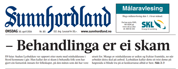 Løp og kjøp avisa @sunnhordland i dag, sak om renholderne på Stord med @audunlysbakken #tillit og #fellesskappic.twitter.com/X90n06lhRn