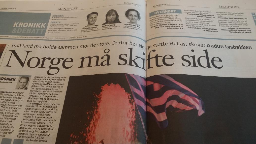 Små land må holde sammen sier @audunlysbakken i @Klassekampen vil vi støtter Hellas. Det gjør ei baltiske land og da?pic.twitter.com/SsGGQab0uY