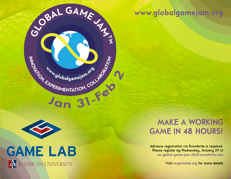 @AmericanU! Last year more than 9,000 games were made in 113 countries. Make new games in 48 hours! Jan 31-Feb 2. All skills welcomed.#DCgames@IGDA_DC https://www.eventbrite.com/e/american-university-global-game-jam-tickets-86410156103 …@AU_SOC@AUcollege@AmericanUalum#augamelabpic.twitter.com/721xlekxYl