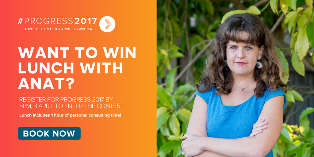 Want to win lunch with @anatosaurus? Book for #Progress2017 by Monday to enter the contest! http://www.progress2017.org.au pic.twitter.com/kkpVFRTATD
