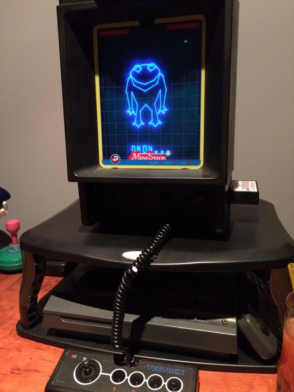 Woohoo, VFrogger action time ;-) #retrogaming #Vectrexpic.twitter.com/eNNIMWeRC4